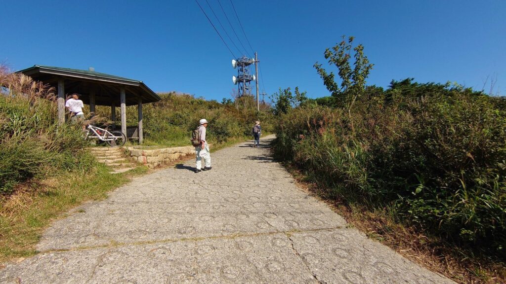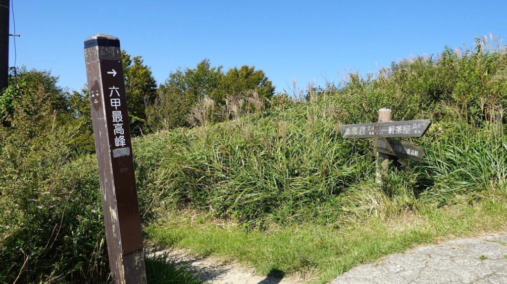 一軒茶屋という茶屋やトイレがある施設が見えてきたら、「六甲山最高峰→」と書かれた標識のところの坂道を上っていきましょう。