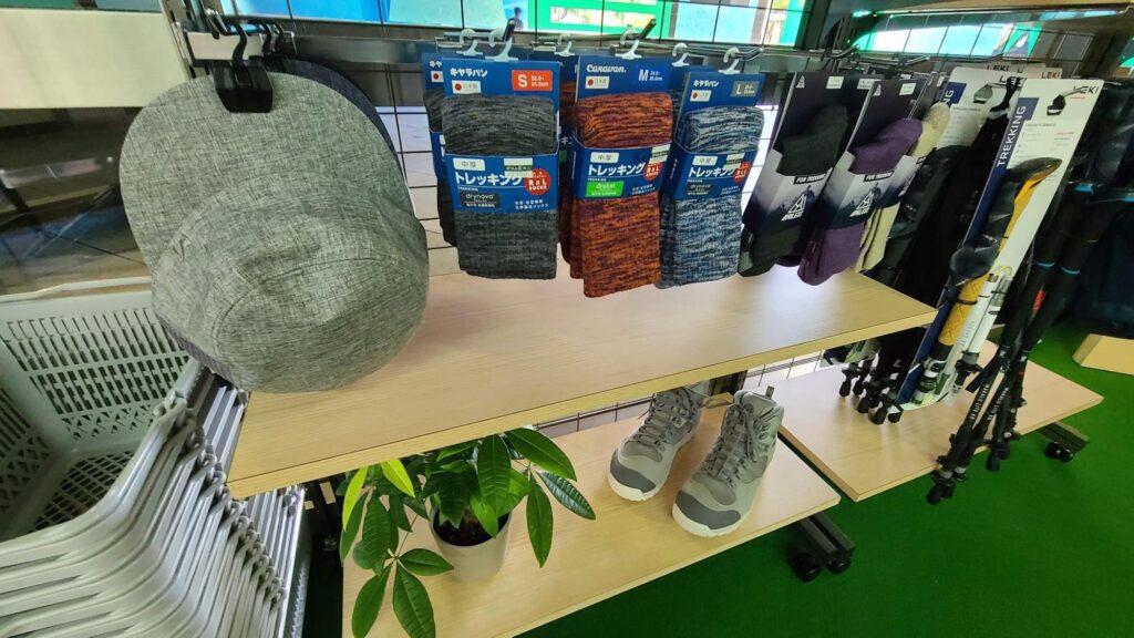 レンタルコーナーもあり登山靴やリュックサックがレンタルできます。何も持たなくてもここで登山道具一式揃えることができるのは便利ですね。