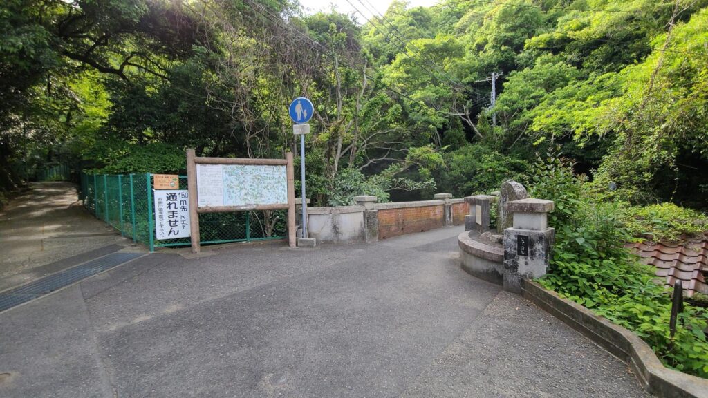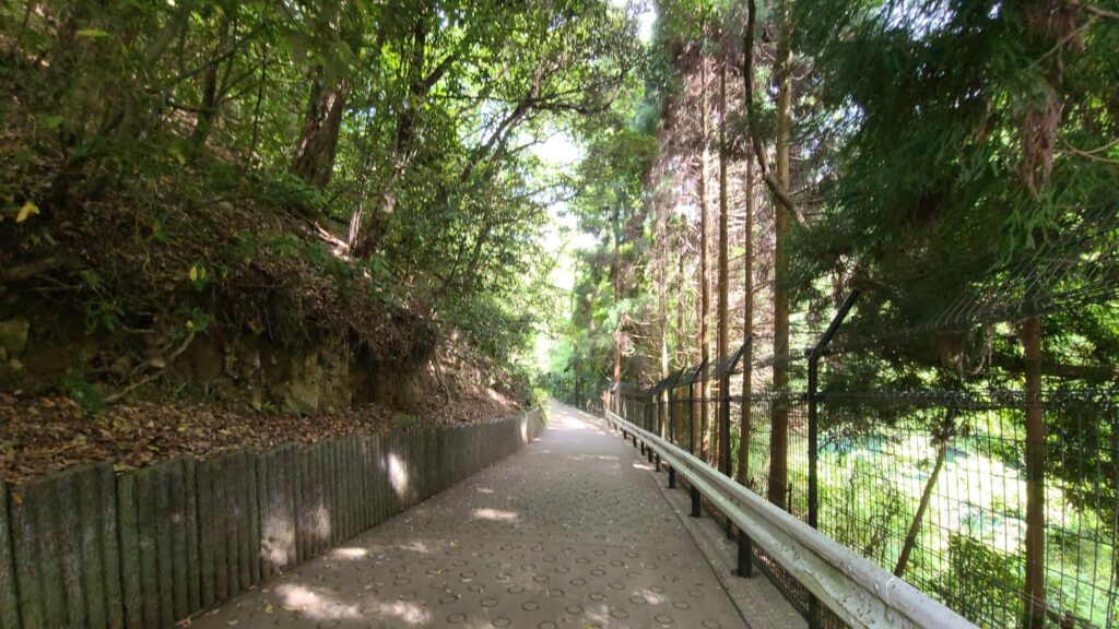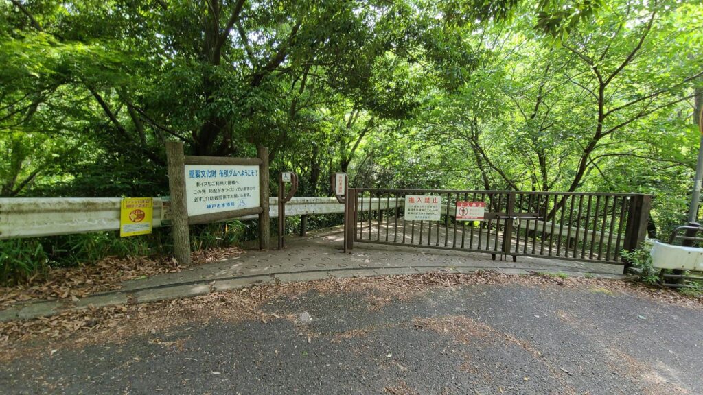 門を出て右折し、少し歩くと布引貯水池(布引ダム)の入り口にたどり着きます。ここまではほぼ平坦な道です。