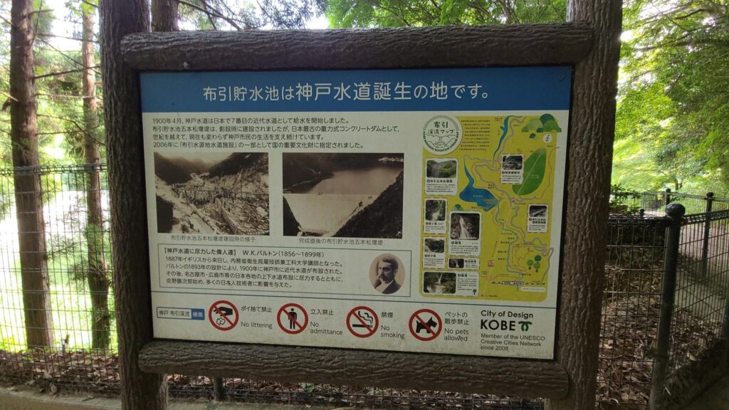 布引五本松堰堤は、イギリス人技師W・K・バルトンによって設計されました。