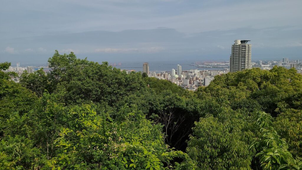 ずーっと下りの道が続き、その先に神戸の市街地が目に飛び込んできます。