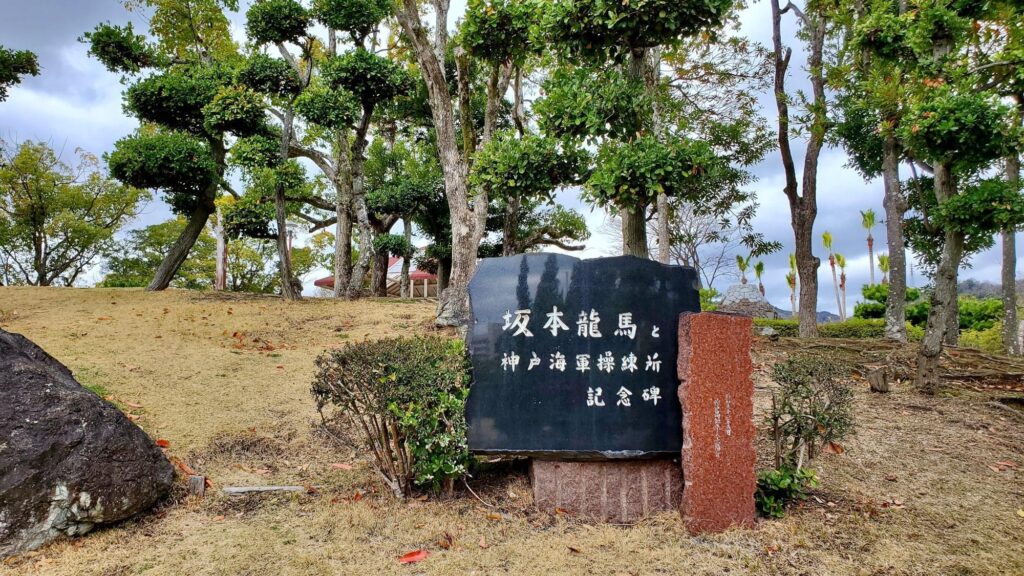 高知県の森には、勝海舟により設立された海軍士官養成機関である神戸海軍操練所の記念碑が。坂本龍馬が塾頭に就き操船術を学んでいたそうです。