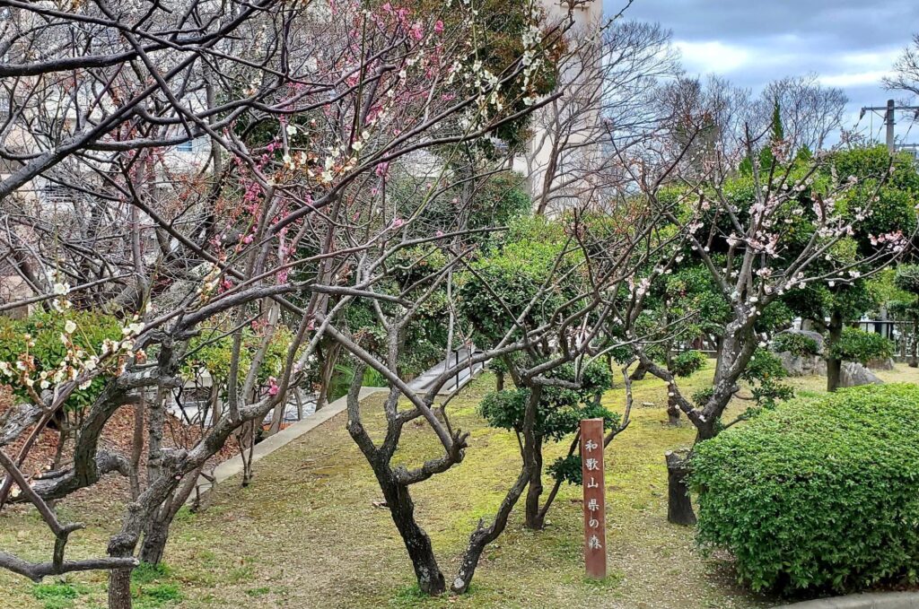 発端となった和歌山県の森には、県の木のウバメガシ、県の花のウメが植栽されています。