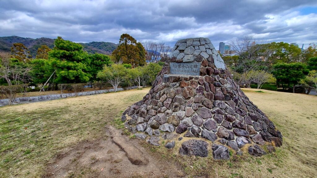 富士山は、神戸静岡県人会 100 周年を記念し、2001年に設置されました。「ふるさとの森」のシンボル的存在ですね。富士山の溶岩、富士桜などもあります。