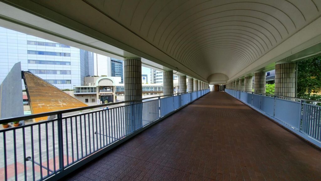 ポートライナーの場合は、市民広場駅を降りて、ここを進めばホテルの2階入り口から館内に入れます。