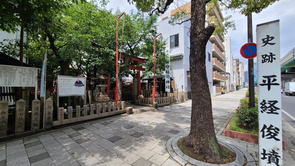 「松尾稲荷神社」の創建がいつなのかは不明ですが、かつて境内には楠木正成公ゆかりの松があり、正成公が戦死した1336(延元3)年には、既に当地に祀られていたことがわかっています。