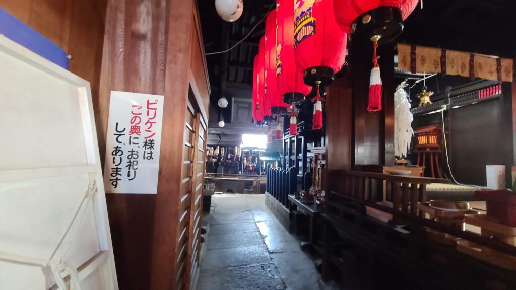 ビリケンさんは、奥の拝殿に祀られていますが、残念ながら現在はガラス越しにしか見ることはできません。
