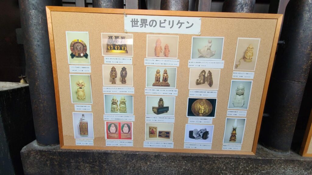 宮司の長山竹之さんはビリケンさんの収集家でもあるそうで、世界各国のビリケンさんの写真が掲示されています。