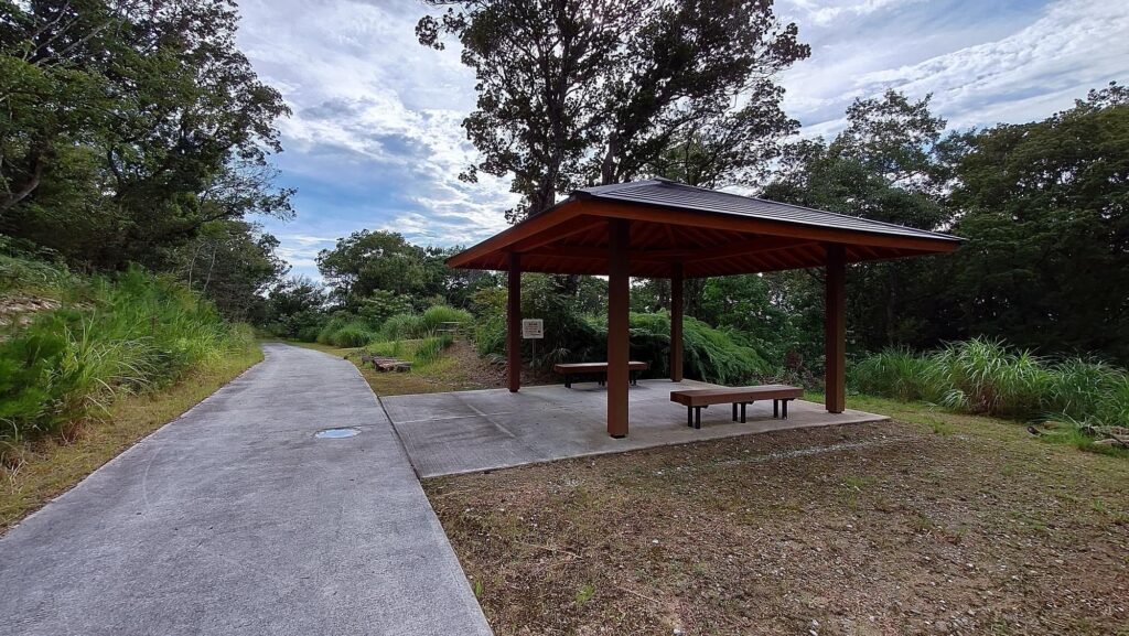 公園自体は、64.5ヘクタールと東遊園地約24個分の広さがありますが、歩けるのは綺麗に整備された主園路と観察園路のみ。交流棟から20分ほどで一番奥のあずまやに到着。ちょっとしたお散歩コースとしてもいいですね。