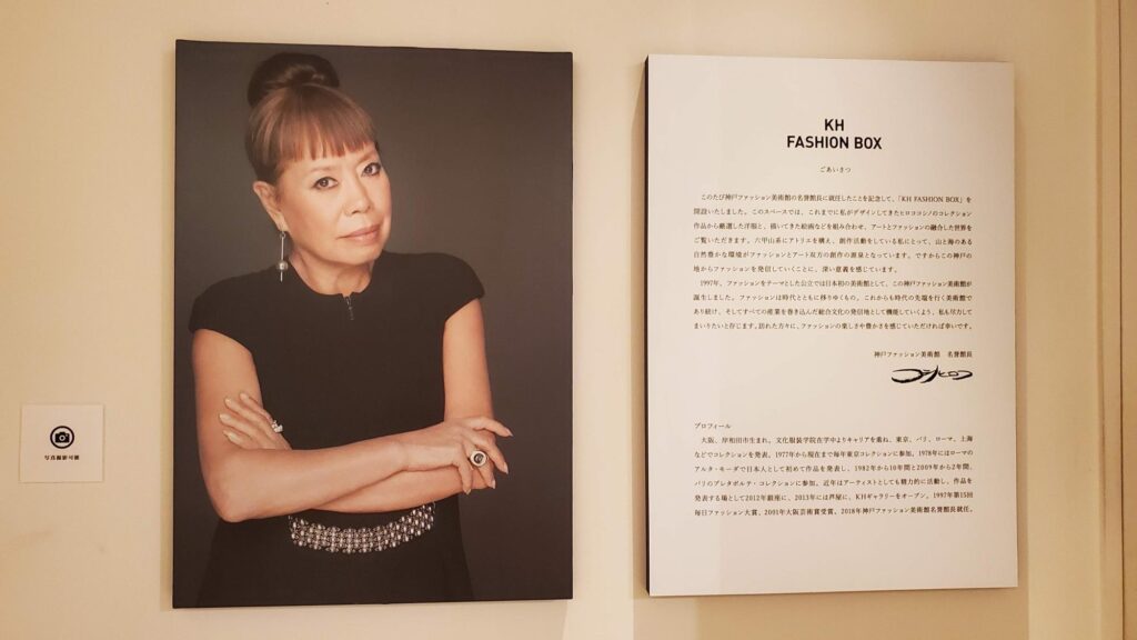 「神戸ファッション美術館」には、無料で楽しめるコーナーもあります。こちらはエントランス付近にある「KH FASHION BOX」。2018年4月1日、世界的なファッションデザイナー・美術家であるコシノヒロコ氏が、名誉館長に就任したことを記念し設けられたもので、コシノヒロコ氏の作品が展示されています。