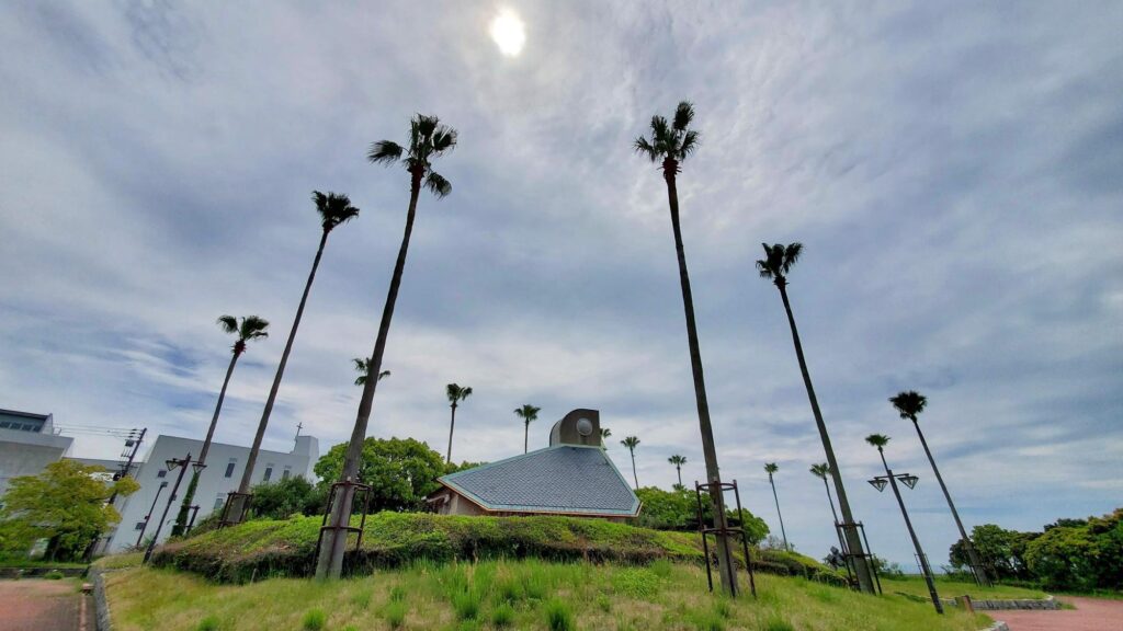 この神戸国際大学キリスト教センターの十字架とヤシの木を一緒に撮るとハワイっぽく写るかも。