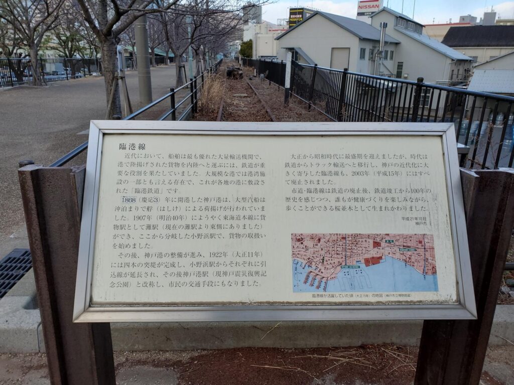 輸送手段の主役がトラックへと移り変わる中、路線は廃止されましたが、神戸港が盛況を極めていた往時を偲ばせる「JR貨物臨港線廃線跡散歩道」は、昔の神戸の面影を感じさせてくれる数少ない場所の一つです。