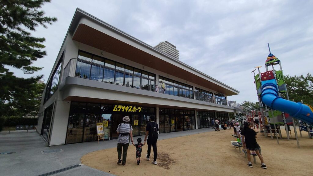 2023年9月1日(金)にリニューアルオープンした須磨海浜公園の西半分。親子連れで手軽に運動できる施設や遊具があり、地域コミュニティと観光客が交流する拠点となるにぎわい施設「松の杜ヴィレッジ」には、魅力的なお店が5店舗。