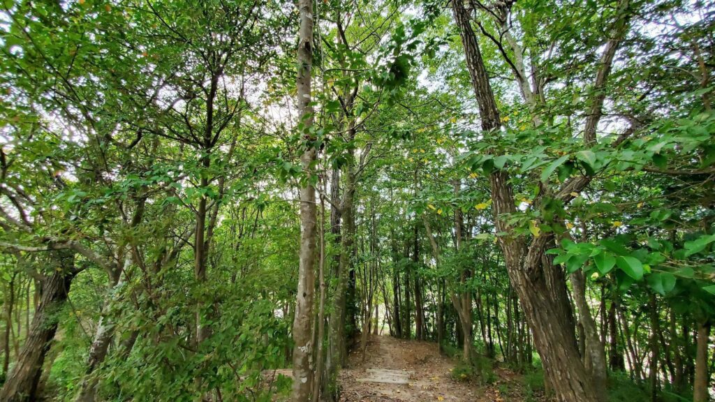 「鈴蘭公園」は面積約2.8ヘクタールの大きな公園で、こんな自然林もあって森林浴が楽しめます。また、健康器具もあるので、お近くの方の散歩コースにもなっているようですね。