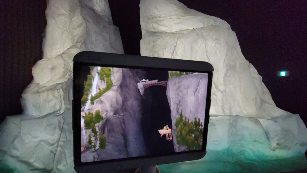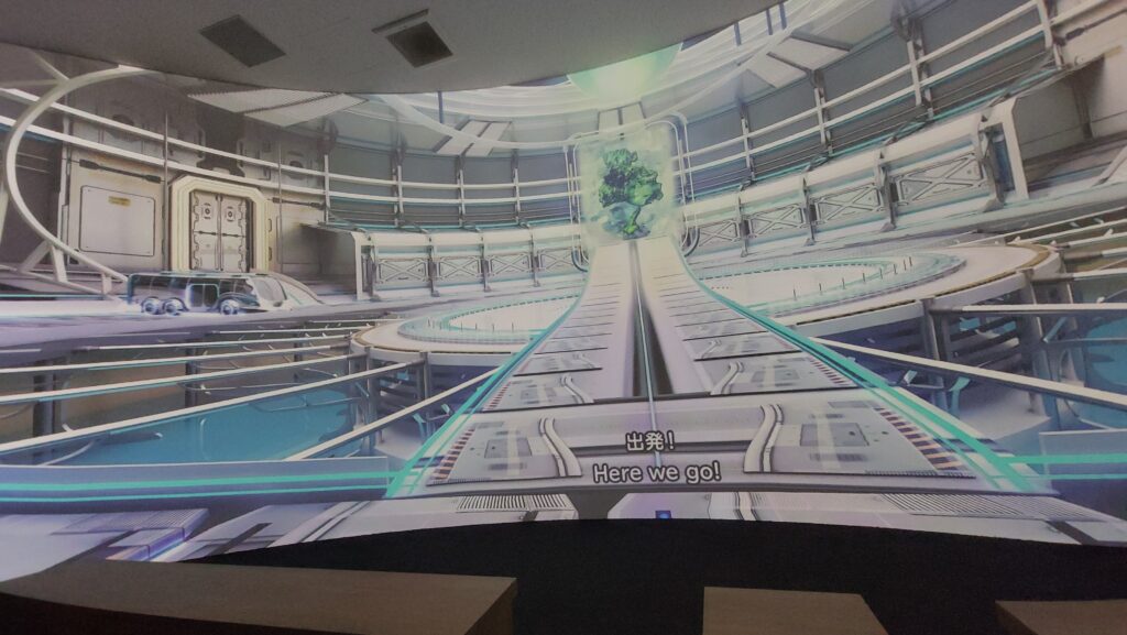 シアターの前のプレショーみたいな映像も撮影禁止。これは大丈夫でしょと思い撮り始めたら制止されました。その様子はこちらの動画を観ていただくと一目瞭然。