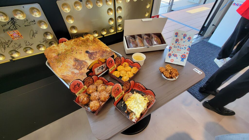 大阪産品のところも取材。写真だけで食べなかったけど。