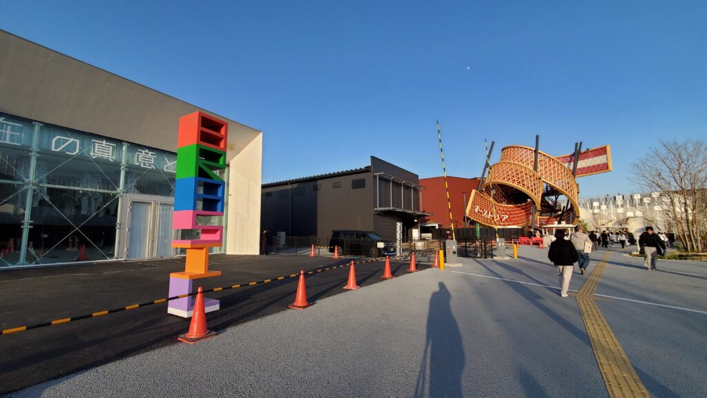 メディアデーの時点でもまだ工事中のパビリオンがいくつかありました。
