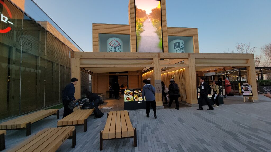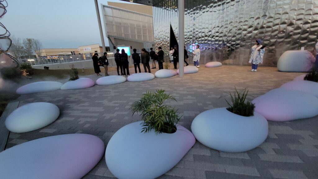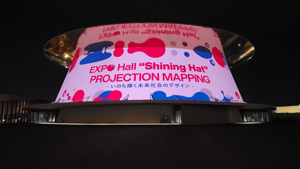 メディアデーではミャクミャクHOUSEも含めて、9つのパビリオンを取材できました。あと神戸に関するお店もいくつか。最後にシャインハットのプロジェクションマッピングを撮影して帰路に。