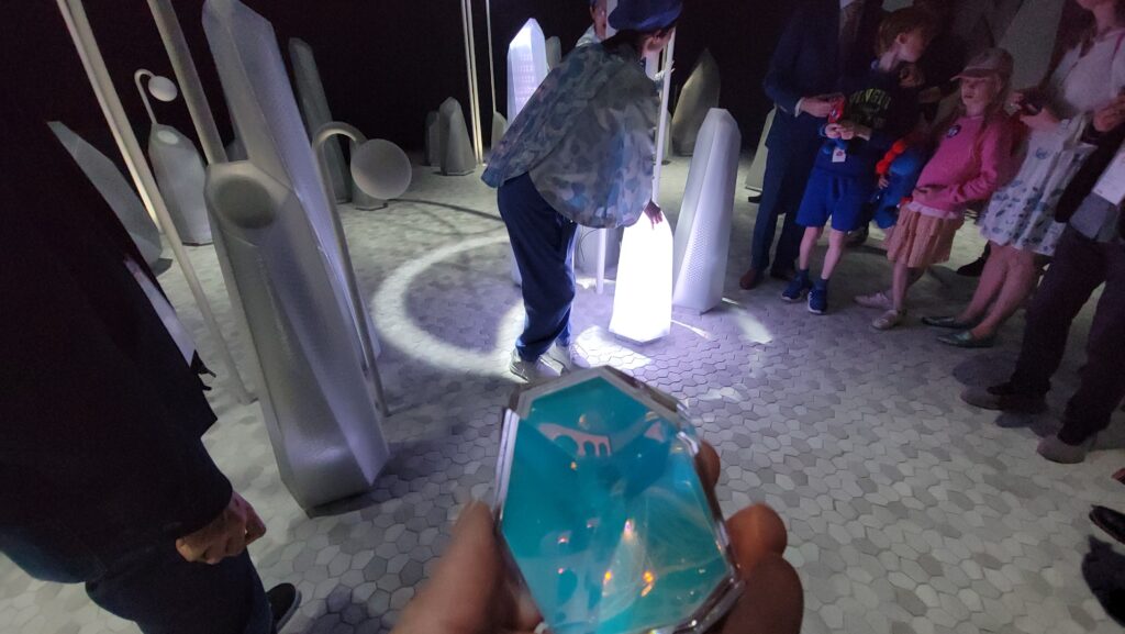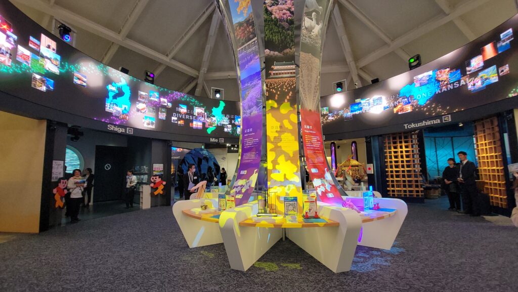 ただこちらも三菱未来館と同様、残念なことに映像の撮影はNG。こちらの動画に撮影できるギリギリのところまで収録しています。プレス向け内覧会なんだからせめて今日ぐらい撮影させてよと思いましたが、案の定撮影NGだったせいか関西パビリオンの中では兵庫県のブースはあまり話題にならなかったですよね。