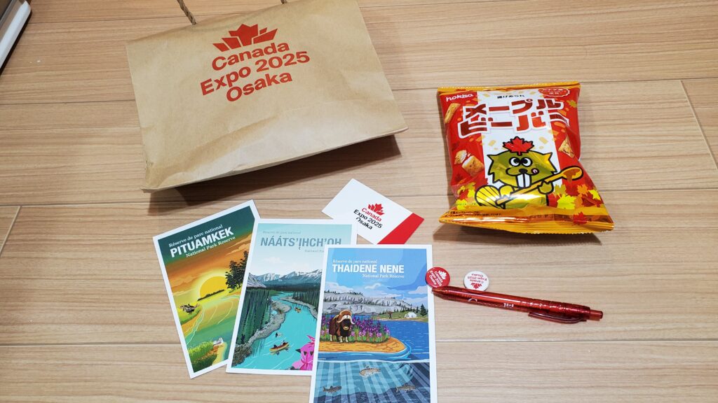 メープルビーバーや絵葉書、ボールペンもいただきました。