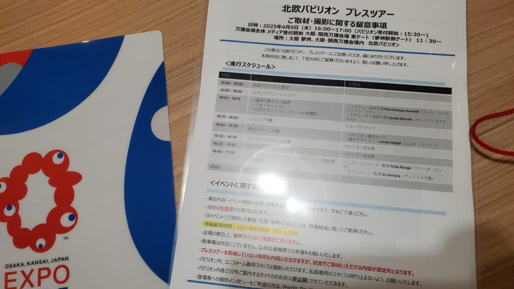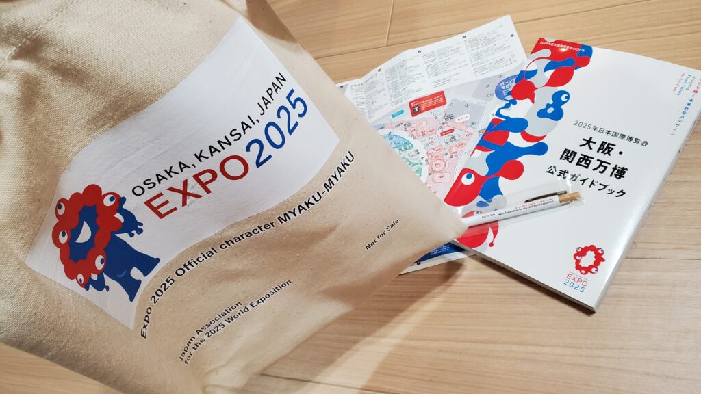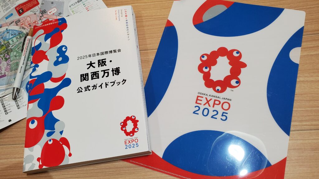博覧会協会からは取材キットとして公式ガイドブックやクリアファイル、ボールペンもいただきました。