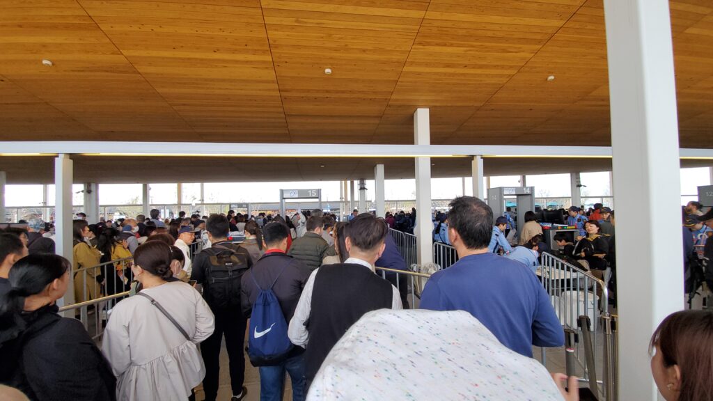 入場ゲートもスムーズ。ほぼ待つことなく10分ほどで入場できました。西ゲートは閉幕間近までずっと快適で、その後も一番よく利用しましたね。