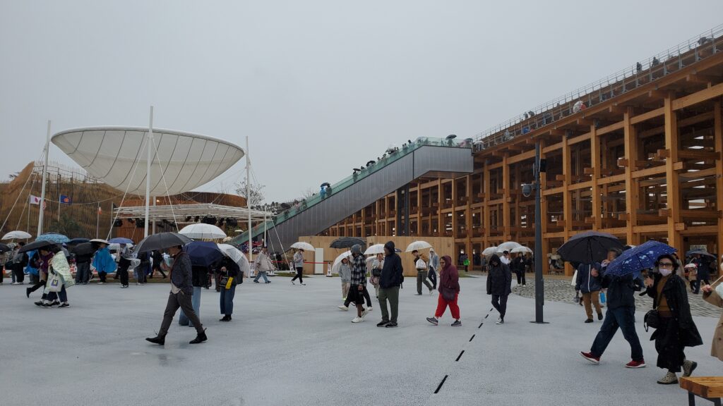 雨も本降りに。とにかく寒くて、大屋根リングにも上る気がしない。まあ、大屋根リングはメディアデーでゆっくり観たので今回はパス。
